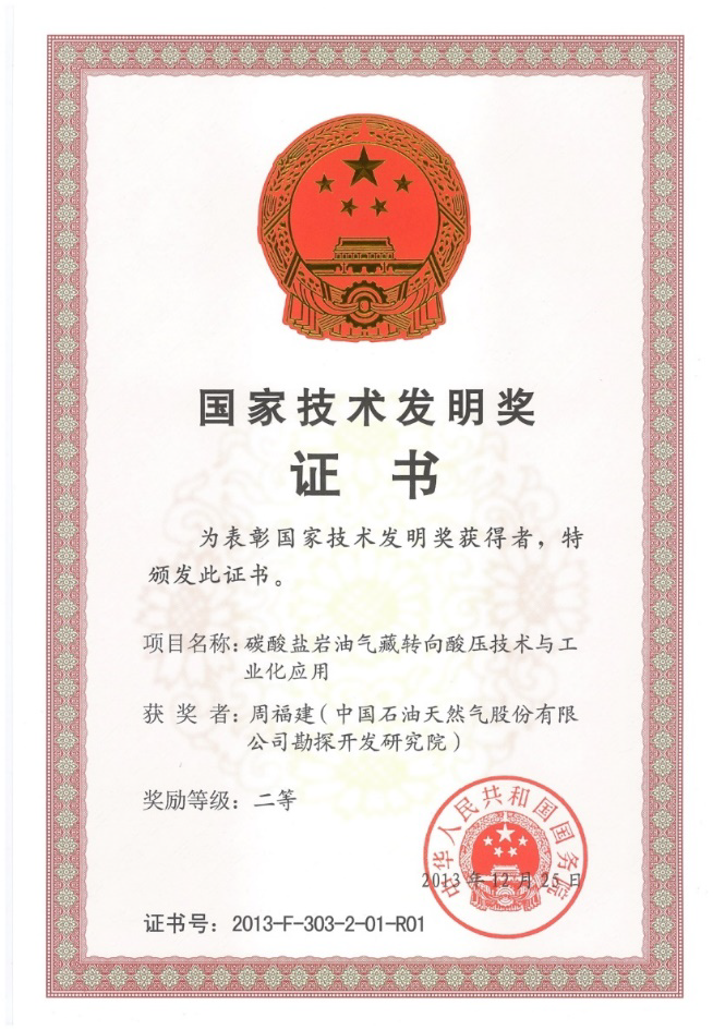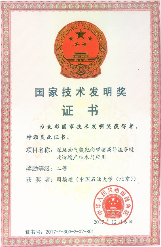 ●“碳酸盐岩油气藏转向酸压技术”和“深层油气藏靶向暂堵高导流改造技术”获2个国家科技发明奖奖二等奖(第一完成人),获省部级科技一等奖6次,二、三等奖11次,获孙越崎能源优秀青年科技奖。