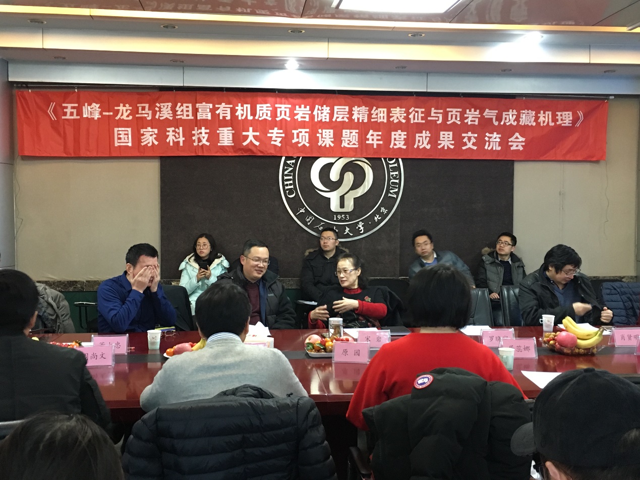 20181228日,由我院姜振学教授任课题长的国家科技重大专项下属课题“五峰-龙马溪组富有机质页岩储层精细表征与页岩成藏机理”(2017ZX05035-0022018年度成果交流会在非常规油气科学技术研究院召开。课题邀请了中国科学院地质与地球物理研究所罗晓容研究员、中国地质大学(北京)肖贤明教授、中国石油大学(北京)宋岩教授、中国石油大学(北京)钟宁宁教授、中国石油勘探开发研究院廊坊分院非常规所所长王红岩教授级高工、中国石油勘探开发研究院廊坊分院非常规副所长董大忠教授组成专家组,宋岩教授任专家组组长。各任务负责人、研究骨干和参与项目的研究生60余人出席会议。