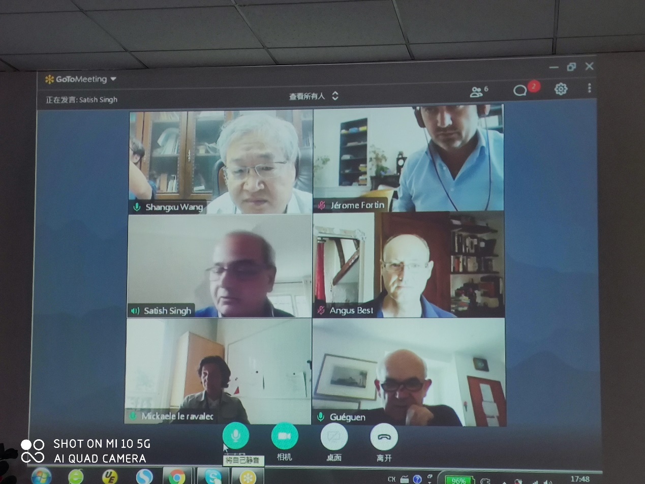 虽然远隔千里,但此次博士论文答辩,严格按照答辩工作规范要求执行。答辩在7月6日北京时间下午16点,伦敦时间上午9点,巴黎时间上午10点正式举行。由法国巴黎地球物理学院(IPGP)Satish Singh教授担任答辩委员会主席,巴黎高等师范学院(ENS-Paris)Jerome Fortin教授、法国石油与新能源研究院(IFPEN)Mickaele Le Ravalec教授、英国南安普敦国家海洋学中心(NOCS)Angus I. Best教授担任答辩委员会委员。王尚旭教授、Yves Guéguen教授及中法双方师生共同参与。
