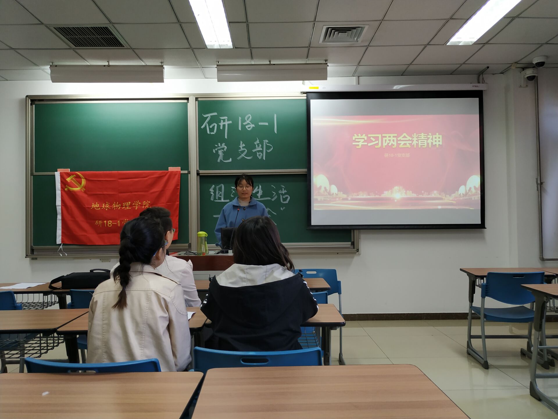 为深入学习贯彻习近平新时代中国特色社会主义思想和党的十九大精神,加强组织体系建设,提升党支部组织力,强化党支部政治功能,根据《2019年上半年党员组织生活指导意见》,地球物理学院全体教职工和学生党员于2019年3月21日围绕学习研讨全国“两会”精神开展主题党日活动。