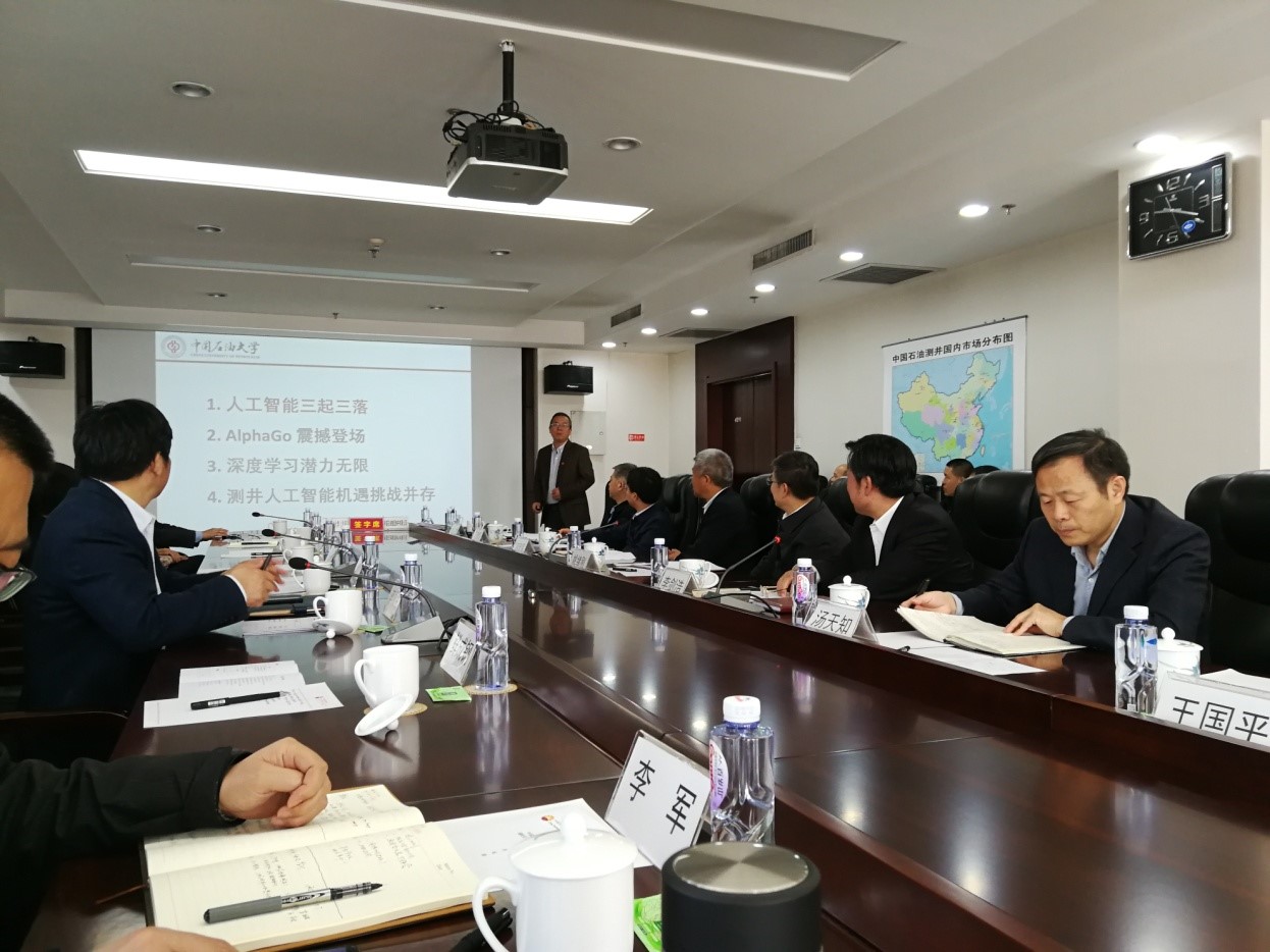 签字仪式前,地球物理学院教授、人工智能学院院长肖立志就“人工智能:油气测井的机遇与挑战”作了专题报告,阐述了人工智能发展历史、突破性进展、深度学习和测井人工智能机遇与挑战。汤天知介绍了中油测井的重组历史、科研生产现状以及未来发展规划。