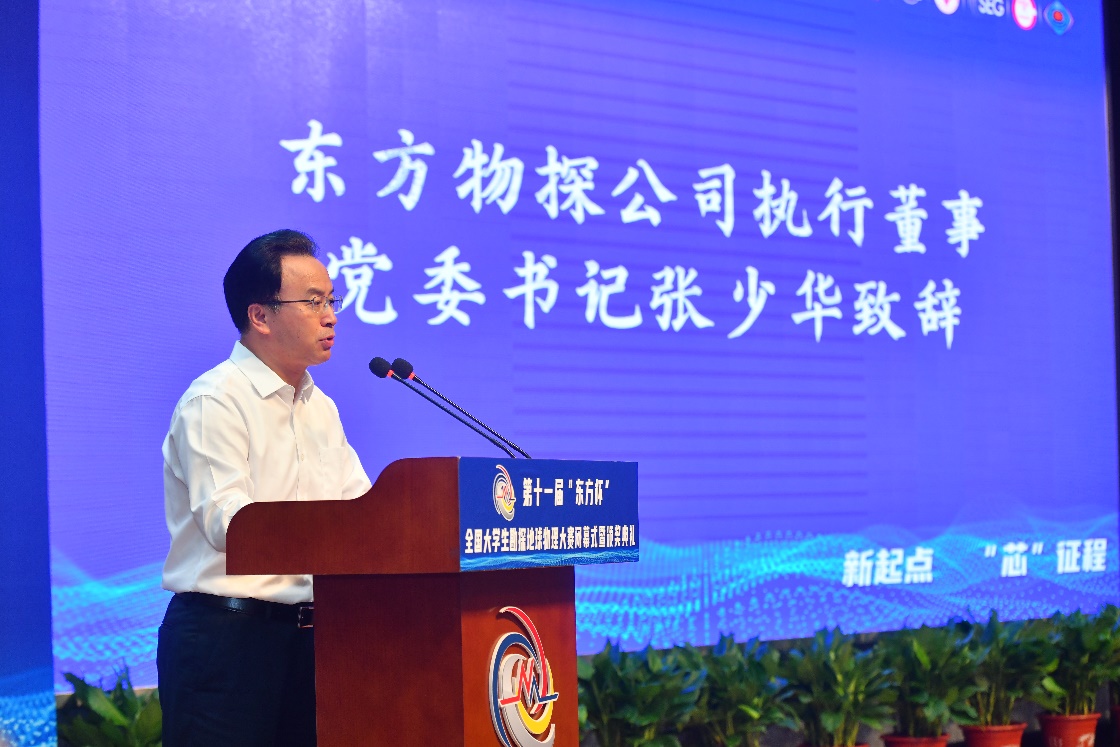 张少华在讲话中指出,大赛历经十一年发展,形成了研究生本科生组双层级、处理解释双赛道、勘探地球物理软件应用及开发双品牌的赛事格局。希望青年学子们成为物探科技的奋进者、开拓者、奉献者,在找油找气、保障国家能源安全的伟大事业中书写璀璨的人生华章!