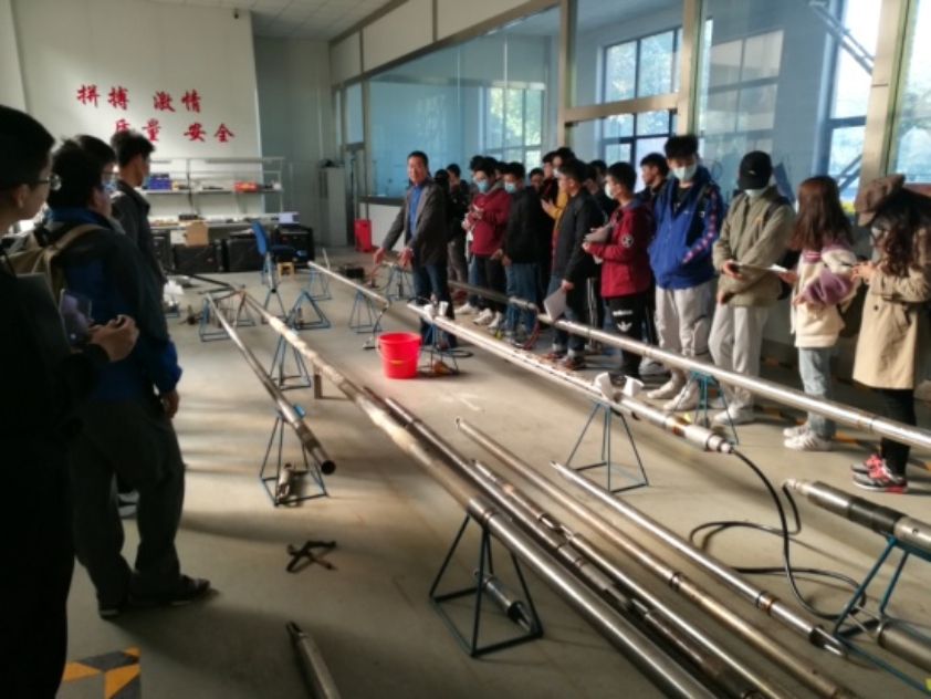 企业现场生产实习过程中,北京环鼎科技有限责任公司的李英波总经理、王志刚经理给予大力的支持,精心准备了各个环节的实践教学课程,同时协调开展了整套测井仪器的组装、联调和下井测试实验,使得同学首次 “窥探”井下测井仪器的全貌和井下作业的全部流程。在现场,同学们收获满满,志不求易者成,事不避难者进,通过本次实习,同学们纷纷表示要继续学好专业知识,将来为祖国的油气勘探开发事业贡献自己的一份力量!