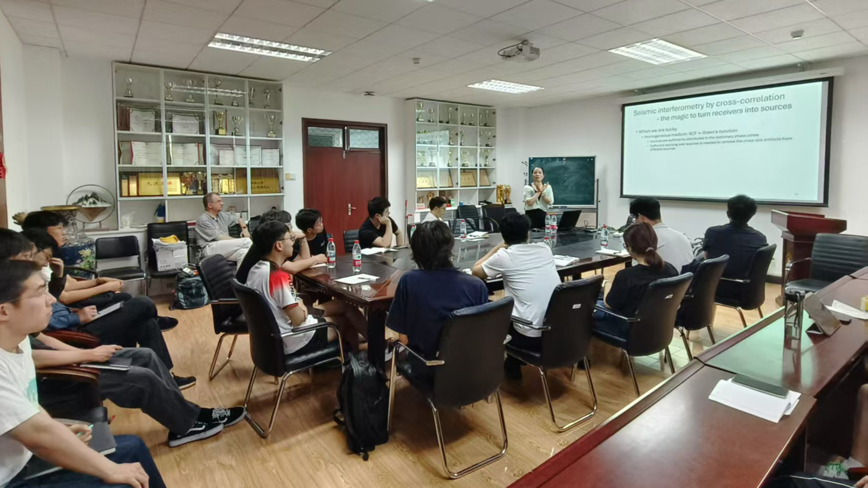 2025年6月13日上午,美国普渡大学(Purdue University)李云月教授应我院刘洋教授邀请,在地质楼525会议室作了题为“地震背景噪声互相关函数中散射波的稳相分析”的学术报告。