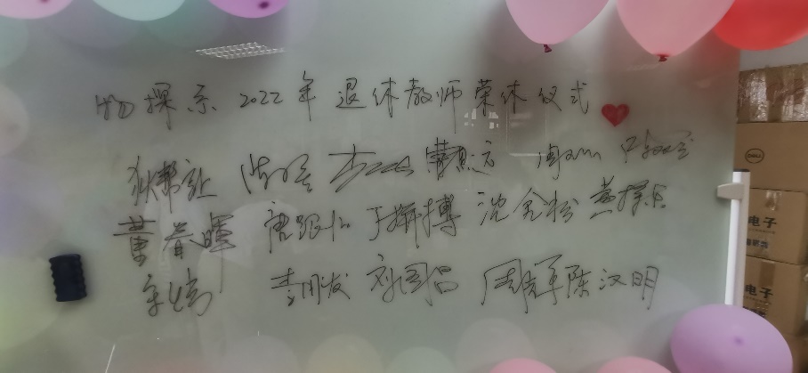 2022年是非常特殊的一年,教师节和中秋节在同一天,对于四位教师而言,也有着特殊的意义,退休不是离开而是多了一份牵挂,退休不是停止而是翻开了新的篇章,夕阳无限好,晚霞别样红。四位教师感谢学院和物探系的关心,纷纷表达了对工作岗位的热爱、对学校的留恋之情和对同事的难舍之意,荣休仪式在热情交流、其乐融融的氛围中画上了句号。