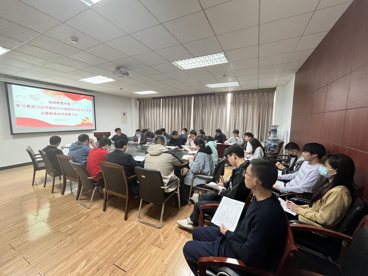 为进一步学习贯彻习近平总书记关于开展主题教育的重要讲话精神和学校关于开展主题教育的部署要求,4月27日下午,地球物理学院在地质楼525召开学习贯彻习近平新时代中国特色社会主义思想主题教育动员部署大会,对学院主题教育进行动员部署。学院领导班子成员、专职组织员、师生党支部书记、院办学工职员参加大会,会议由学院党委书记周玉成主持。