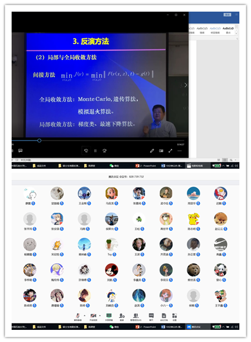 陈小宏老师在《地球物理反演基础》课上对研究生提出殷切希望:“希望大家注意安全,保持健康,适当锻炼,努力学习。要树立信心,牢记使命,做到停课不停学,保质保量完成研究生学习阶段的各项任务。”陈老师还积极与研究生进行互动,组织研究生参与课堂讨论提升,课堂效果。
