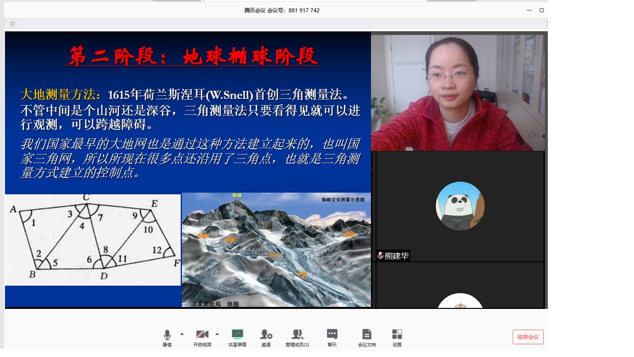 开课第一周,地球物理学院教师化身“课程主播”,展现 “十八般武艺”,将书房、客厅变为讲台,在家中为学生传道授业解惑。2月24日,校党委书记山红红及研究生院、教务处相关负责人参与了我院陈小宏老师的《地球物理反演基础》的在线课堂,听取了陈老师的授课,并与同学们进行了交流。开课第一天起,地球物理学院27门次课程陆续开课,学院教师通过雨课堂、腾讯课堂、腾讯会议等平台与同学们相聚“云端”,真正实现了防疫教学双箭齐发。
