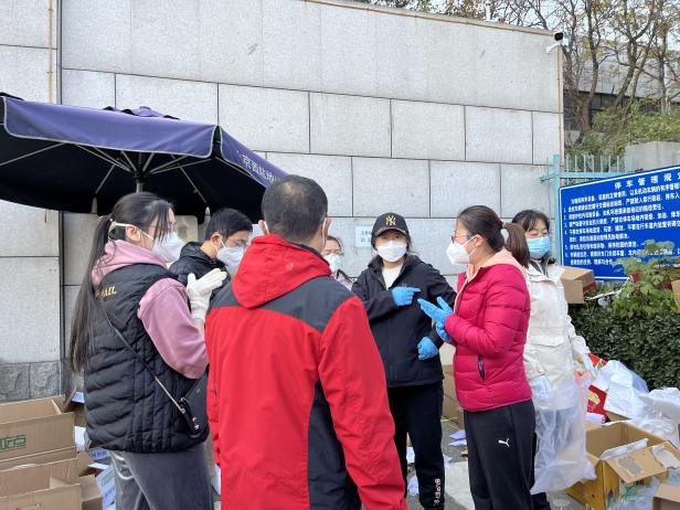 封闭管理第一天,徐静担心滞留在校人员没有足够的生活物资,她购买了口罩、牙刷、牙膏、消毒用品等物资亲自送到学校门口,此时,她5岁的儿子还独自在家等候。