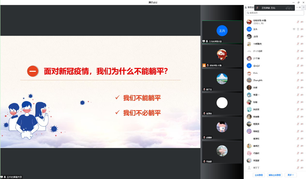 地球物理学院全院师生同上大思政课,进一步强化了师生的认识,统一了思想,坚定了抗击疫情的决心,全体师生共同努力,众志成城,一定会打赢这场疫情防控阻击战。