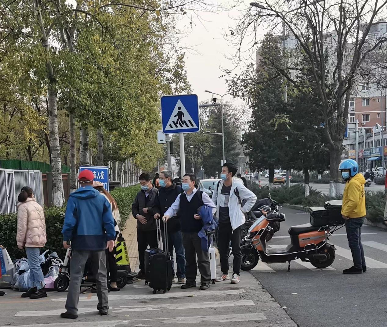 鉴于此次校园封控事发突然,很多学生的电脑等学习用品还存放在学生工作室,学院党委牵头,辅导员和院办职员等老师迅速行动,组建了一支搬运队伍,辅导员组织校内学生帮忙打包学生物资,院办职员等老师在校外接应,在徐静老师的带领下,老师们及时将学生所需物资送到学生所在校区。徐静老师多次往返于南校园和东校园,不仅为封控学生转运物资,还为在校教师及时补充防疫物资等生活用品。