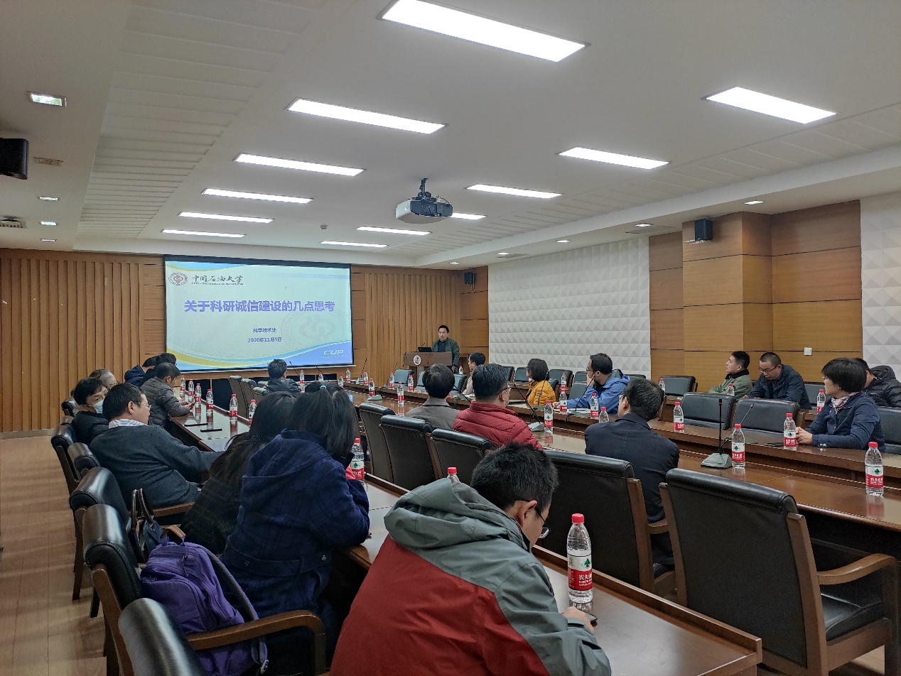 为进一步加强我院教师的师德师风建设,11月5日下午,地球物理学院党委邀请科技处副处长王怀英在地质楼204作关于科研诚信建设的讲座,学院党委书记陆雅莉、副院长王兵、物探系、测井系党支部成员及非党员教师共同参与了本次讲座。
