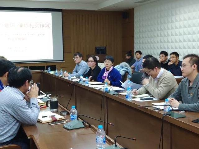 2018年12月21日,中国石油大学(北京)校党委书记山红红参加地学院油气勘探与开发地质系教工党支部与校党政办公室党支部联合开展的“强化四个意识,锤炼扎实作风”主题学习活动。