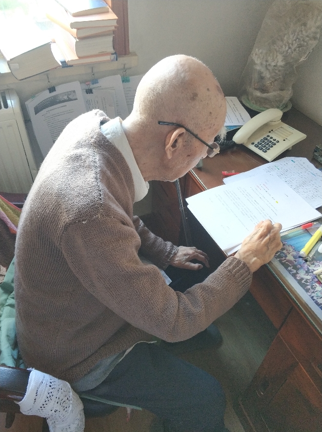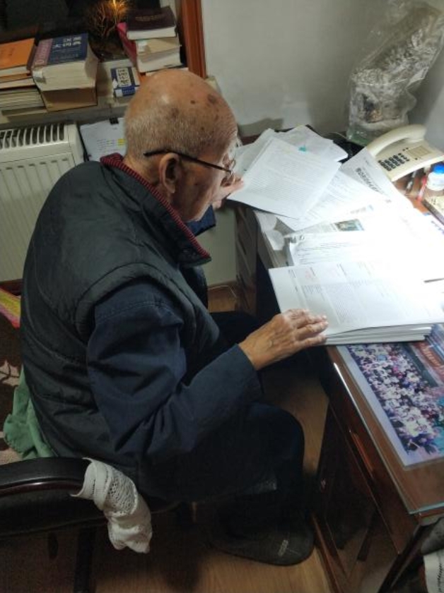 最后一次见冯先生,是2022年12月2日。冯先生因为身体原因,很久不去办公室了,但他一直坚持在家里审稿。由于疫情和学校管控原因,爱人不能去办公室,便由我替她给冯先生送了四次稿件。第一次去冯先生家(2022.11.21),他已经不认识我了,也听不到我讲话了。即使我大声说话解释他也听不清,我便用笔纸写字来同冯先生交流,把我的姓名写给他,他看到后很是开心,说原来是你啊,在办公室我见过你很多次的,并多次对我给他送稿件表示感谢。我再一次被冯老师所折服,身体状况都这样了,但他每天都在坚持审稿。后面三次我再去送稿件,冯老师看到我便开心的推着小轮椅把我引到书房,把早已准备好的审稿意见拿给我,并交代我如何向爱人转达他的具体要求。12.2号那次,还怕我表达不清,专门当着我的面给爱人打电话安排工作。每次去他家,我都“偷偷”拍照片了,一是记录一下老先生忘我的工作精神;二是也想留个纪念,作为我们后辈学习的楷模,对我本人也是一个很好的激励和鞭策(附4次去冯先生家送稿件时拍的照片,日期分别是2022.11.21、2022.11.25、2022.11.29和2022.12.2)。遗憾的是,后面因为冯先生身体原因,我没再去他家给他送稿件了。不曾想,12.2那次居然是最后一次见冯先生!