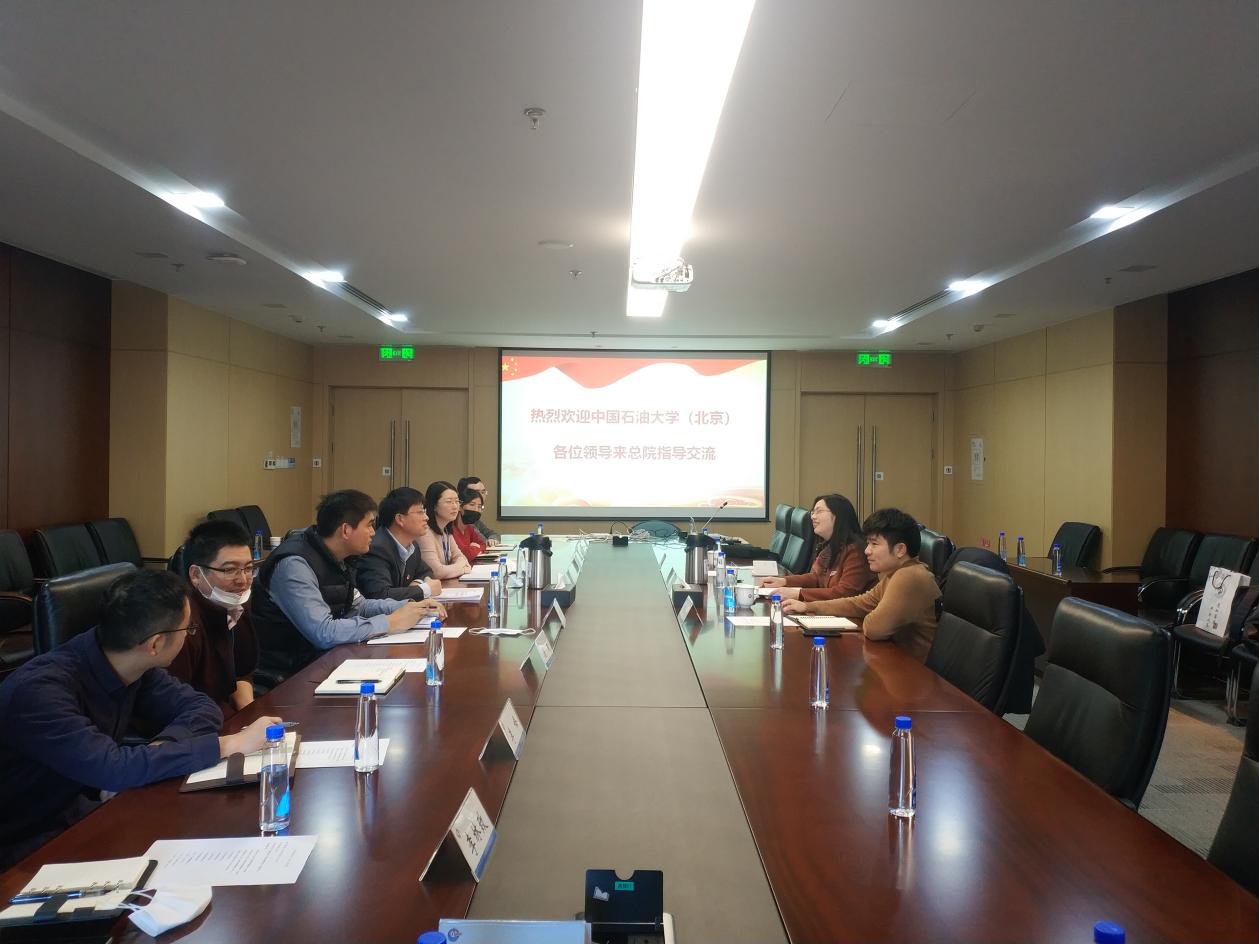 2020年12月16日,中国石油大学(北京)地球科学学院副院长陈冬霞、党委副书记周学智、辅导员常小飞一行赴中海油研究总院调研交流。中海油研究总院办公室主任王建文、人力资源部培训主管刘杨、人力资源部人事主管王建新及六位校友出席会议。