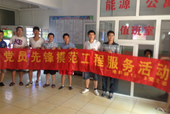 为响应学校开展党员先锋模范工程的号召,深入学习贯彻党的十八大精神,在学生中开展群众路线教育活动,充分发挥学生党组织和广大学生党员的战斗堡垒作用,实现建设石油石化学科领域世界一流研究型大学的石大梦提供坚强保证。地科研12-3党支部于2014年6月12日在中国石油大学(北京)能源公寓开展“环卫先锋”活动。