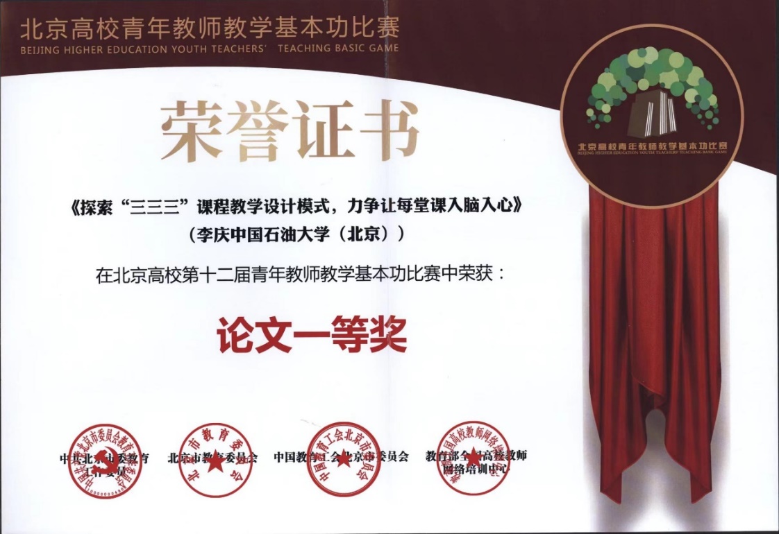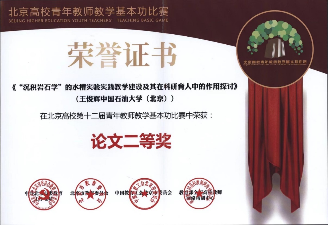 2022年7月,中国教育工会北京市委员会公布北京高校第十二届青年教师教学基本功比赛论文比赛获奖名单。地球科学学院副教授李庆参赛论文《探索“三三三”课程教学设计模式,力争让每堂课入脑入心》荣获一等奖,王俊辉参赛论文《“沉积岩石学”的水槽实验实践教学建设及其在科研育人中的作用探讨》荣获二等奖。