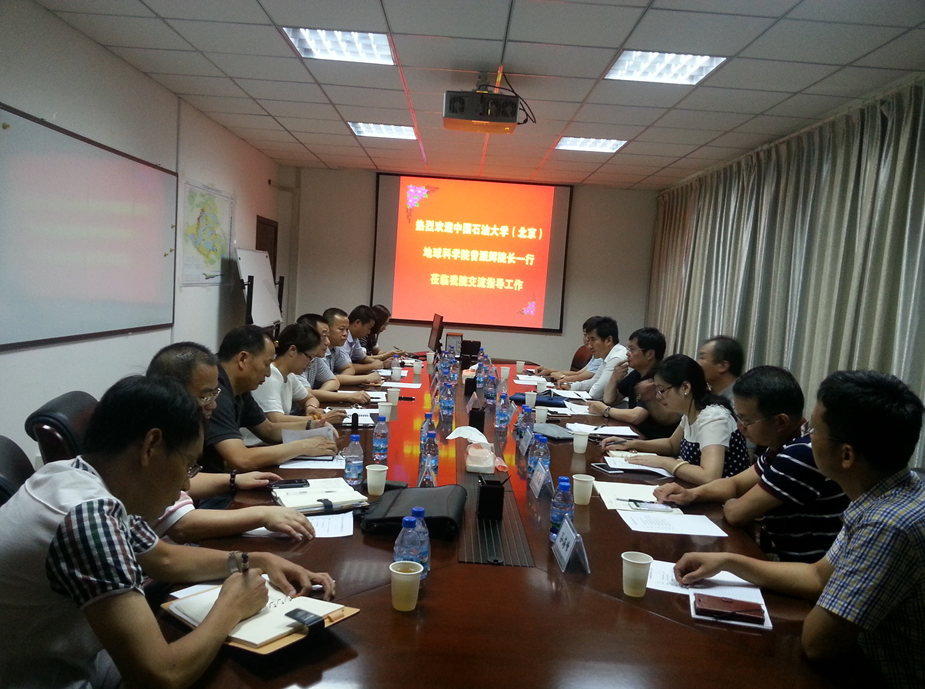 座谈会上,新疆油田勘探开发研究院总地质师李学义和实验检测研究院科管科科长贾国澜分别介绍了其研究院基本情况、勘探历程、勘探成果和“十三五”工作设想, 地球科学学院院长曾溅辉教授对学院的基本概况、科研方向和科研成果、以及与新疆油田合作基本情况和下一步合作意向进行了汇报;之后,双方就人才培养、科技创新与科学研究等方面进行了深入交流。本次走访,了解了新疆油田当前勘探开发形势及油田近期在勘探开发领域的科技攻关方向及需求、油田现有科研生产实验室建设状况,结合学校加强建设克拉玛依校区的要求,为克拉玛依校区“油气资源与探测国家重点实验室分室”建设方案的制定提供依据。