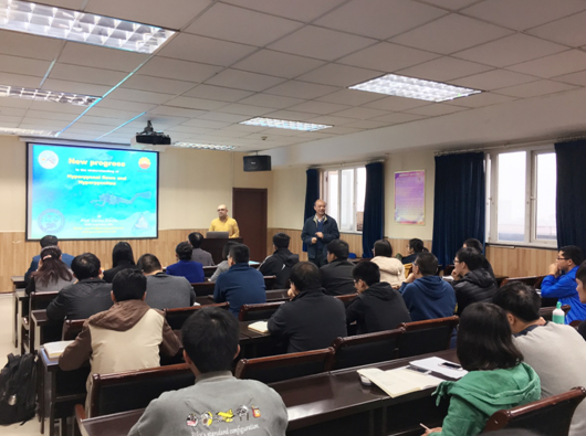 2016年10月21日,应我校地球科学学院沉积岩石学及层序地层学学科带头人朱筱敏教授的邀请,阿根廷国立南方大学(Universidad Nacional del Sur)重力流研究专家Carlos Zavala教授来我校进行学术交流,并为我院师生作了题目为“New progress in the understanding of hyperpycnal flows and hypercpynites”的学术报告。他在报告中介绍了异重流的相关概念与触发机制,异重岩的岩相特征和识别标志,内源浊积岩和外源浊积岩的区别,并同时列举了阿根廷、委内瑞拉、特立尼达和多巴哥以及我国松辽盆地等大量异重流沉积研究实例,引起了在场老师和同学广泛关注和讨论。