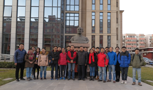 答辩后所有答辩组专家和在站同学在地质力学研究所新楼李四光铜像前合影留念。
