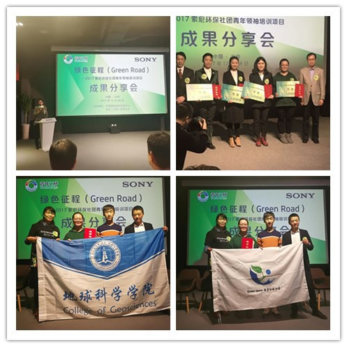 12月8日, 2017年索尼环保社团青年领袖培训项目——绿色征程(Greenroad)成果分享会暨颁奖仪式在京圆满结束,该项目面向全国高校环保社团骨干、关注可持续发展议题的社团青年、社区青年工作者等青年群体,7月下旬活动启动招募,共有14个团队经过严格筛选杀出重围。我校地球科学学院Green Space绿芽环保协会负责的“植物叶片对颗粒物的吸滞作用”项目荣获三等奖。