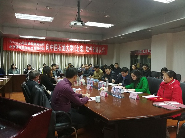 2017年12月14日下午,澳大利亚Petrosys有限公司联合德康泰克公司、北京瑞马能源科技有限公司软件捐赠仪式在地质楼1105会议室举行。地球科学学院领导、澳大利亚Petrosys公司、德康泰克(北京)技术有限公司、北京瑞马能源科技有限公司代表及地球科学学院部分师生代表一同参加了仪式,会议由陈冬霞副院长主持。