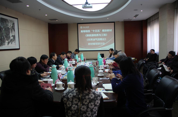 刘成林教授担任会议主持人并作欢迎致辞,向大家介绍了现今本科生与研究生教材的使用情况及存在的问题,认为一本合适的教材是提高教学质量的关键;石油工业出版社高教分社徐秀澎社长向大家介绍了两本教材的建设背景以及最新的富媒体教材。在一天的时间里,大家对《非常规油气与可再生能源》和《世界油气资源分布》两本教材的书名、大纲、编写分工以及进程安排进行了深入探讨,每位专家各抒己见,结合各自的教学与研究领域提出了自己的见解以及宝贵的意见,达成了广泛共识。二教材将在2018年内完成初稿,2019年投入教学使用。