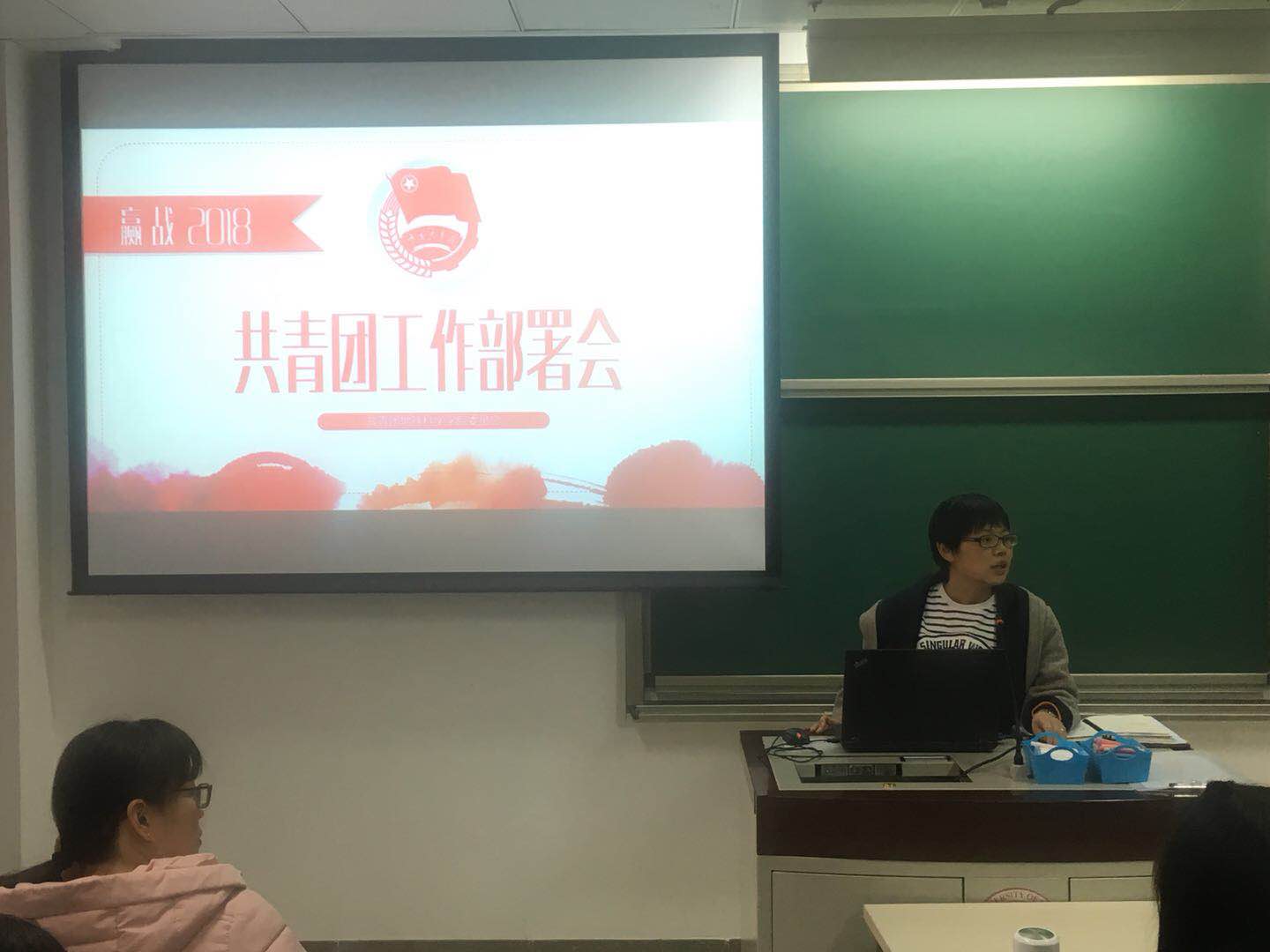 2018年3月21日,我院团委在四教301举行了2018年共青团工作部署会暨宣传员、信息员专题培训会。会议由地学院团委书记费葳葳主持,地学院团委委员、各团支部书记、宣传员、信息员以及社团相关负责人参加了会议。