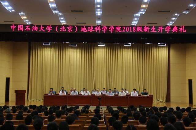 2018年8月27日上午,地球科学学院2018级新生开学典礼在中油大厦报告厅举行,欢迎地学院五百余名新同学的到来。中国石油大学(北京)副校长鲍志东、地学院院长曾溅辉、全国教学名师朱筱敏、长江学者奖励计划特聘教授曾联波、北京市昌平区人大常委会副主任张强斌、地学院副院长岳大力、我校人事处副处长姜福杰、地学院党委副书记周学智及各系、中心代表出席本次开学典礼。典礼由学院党委书记王贵文主持。