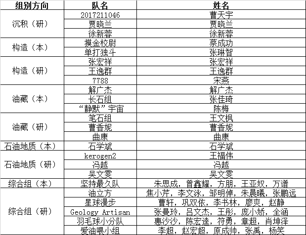最终,以下选手从选拔赛中脱颖而出,获得代表学校参加第三届全国油气地质大赛总决赛的机会:
