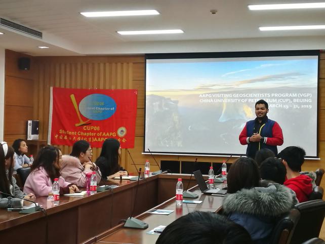2019年3月29日下午,中国区第二届AAPG--VGP(Visiting Geoscientist Program)活动在中国石油大学(北京)地质楼204会议室举行。中国石油大学(北京)AAPG学生分会指导教师费葳葳、北京大学AAPG学生分会、中国石油勘探开发研究院AAPG学生分会等成员受邀参加活动。
