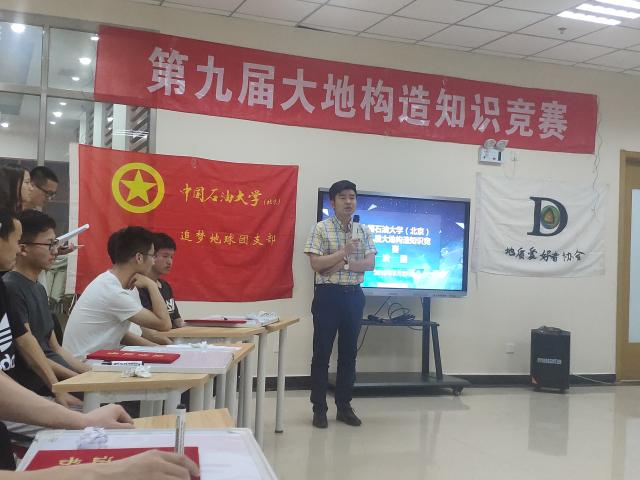2019年5月27日晚,中国石油大学(北京)第九届大地构造学知识竞赛决赛在学生活动中心四楼多功能厅举行。地球科学学院党委副书记周学智、团委书记费葳葳、各年级辅导员出席比赛,地学院童亨茂教授应邀出席并担任主考官。