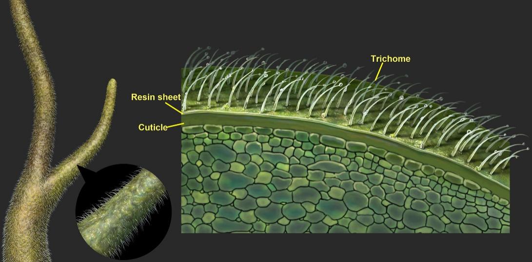 中泥盆世植物表面树脂分泌及保护膜形成的复原图