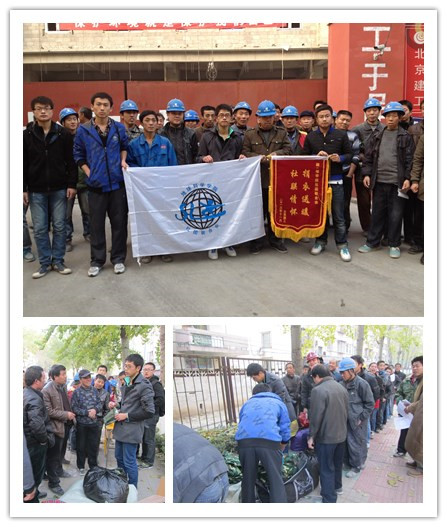本次活动共收到全校范围内2013级新生捐赠的军服200余套,捐往北校区正在施工的工地,送去了来自石油大学的温暖。军服分发完毕,我们在工地门口举行了简单的锦旗授予仪式,并与农民工同志合影留念。