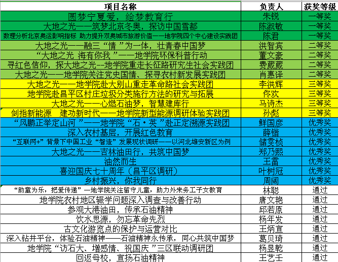 地球科学学院深入学习习近平新时代中国特色社会主义思想和党的十九大精神,贯彻全国高校思想政治工作会议对实践育人的重要指示,团结引领广大青少年听党话、跟党走,树立和践行社会主义核心价值观,集中开展以“青年服务国家”为主题的暑期社会实践工作。按照上级团委有关要求,院团委引领广大青年学生勇于追梦圆梦,以实际行动助力精准扶贫,服务乡村振兴战略,践行美丽中国理念,切实在新中国成立70年来取得的新成就新面貌的生动实践中受教育、长才干、作贡献。学院组织社会实践团队在暑期开展了形式丰富、内容多样的社会实践活动,涉及方向涵盖了“中国精神学习宣讲行动”、“精准扶贫乡村振兴行动”、“关注民生志愿公益行动”、“美丽中国环保科普行动”、“健康北京冬奥推广行动”等多个主题,其中“圆梦宁夏爱,绘梦教育行”社会实践团入选共青团中央“深度贫困地区青春行”专项行动,“大地之光 海有你我——地学院环保科普行动”暑期社会实践团、“地学院赴昌平区村庄垃圾分类施行方法的研究与拓展”暑期社会实践团、“喜迎国庆七十周年(昌平区调研)”暑期社会实践团入选共青团中央“村庄规划编制”专项行动,“数理分析北京奥运影响指标 助力提升双奥城市旅游价值——地学院四个中心建设实践团”暑期社会实践团入选北京高校师生服务首都“四个中心”功能建设“双百行动计划”团队。