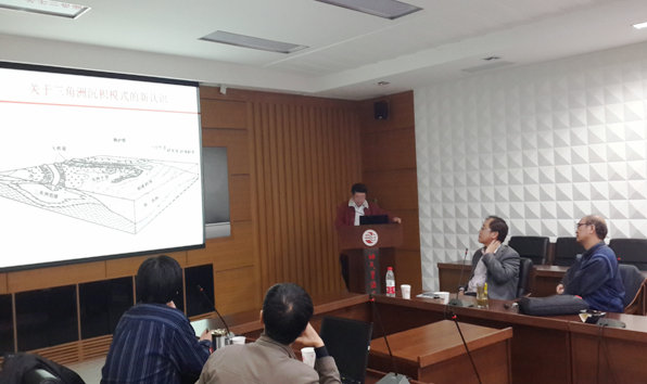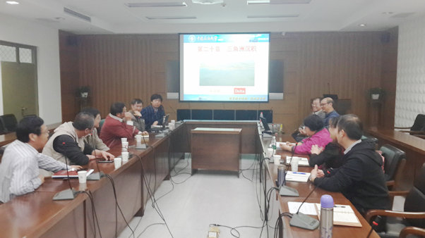教学团队成员金振奎教授针对“三角洲发育的水动力条件及水下分支河道的发育情况”做了主题发言,他认为“传统的”水下分流河道实际上是水上分支河道被湖水或海上淹没形成。他强调,因为水上分支河道进入水下以后,能量衰减,不能下切早期的湖底或海底形成新的水道。教学团队负责人朱筱敏教授展示了大量的三角洲现代沉积照片,并认为,水下分流河道确实存在,但其在水下延伸的距离、沉积水动力作用方式、海(湖)平面变化及控制因素等,还值得深入分析。