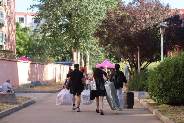 清晨伊始,校内各主要干道早已布置妥当,鲜艳的欢迎展板、横幅、井然有序的报道点,共同营造出温馨周到的迎新环境。学校在北京各火车站等重要交通枢纽均设立了新生接待站,安排专车循环接送,确保新生及家长能够顺利、安全抵达校园。