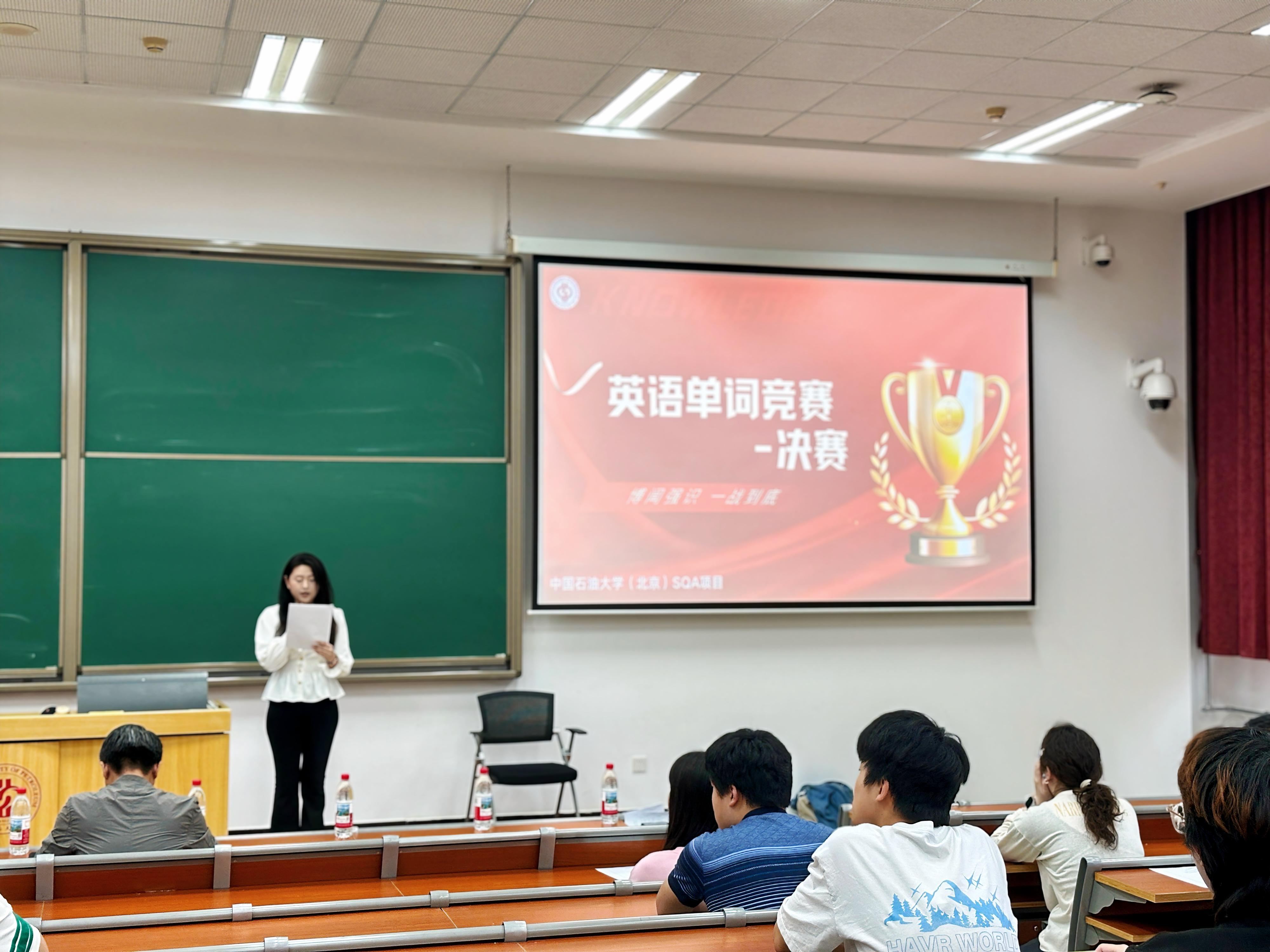2025年4月29日晚,中国石油大学(北京)SQA项目第三届单词竞赛决赛于五教302教室成功举办。经过初赛选拔,25名大一新生晋级决赛,通过“个人+团队”双赛道赛制,展开了一场知识与协作并重的语言竞技。