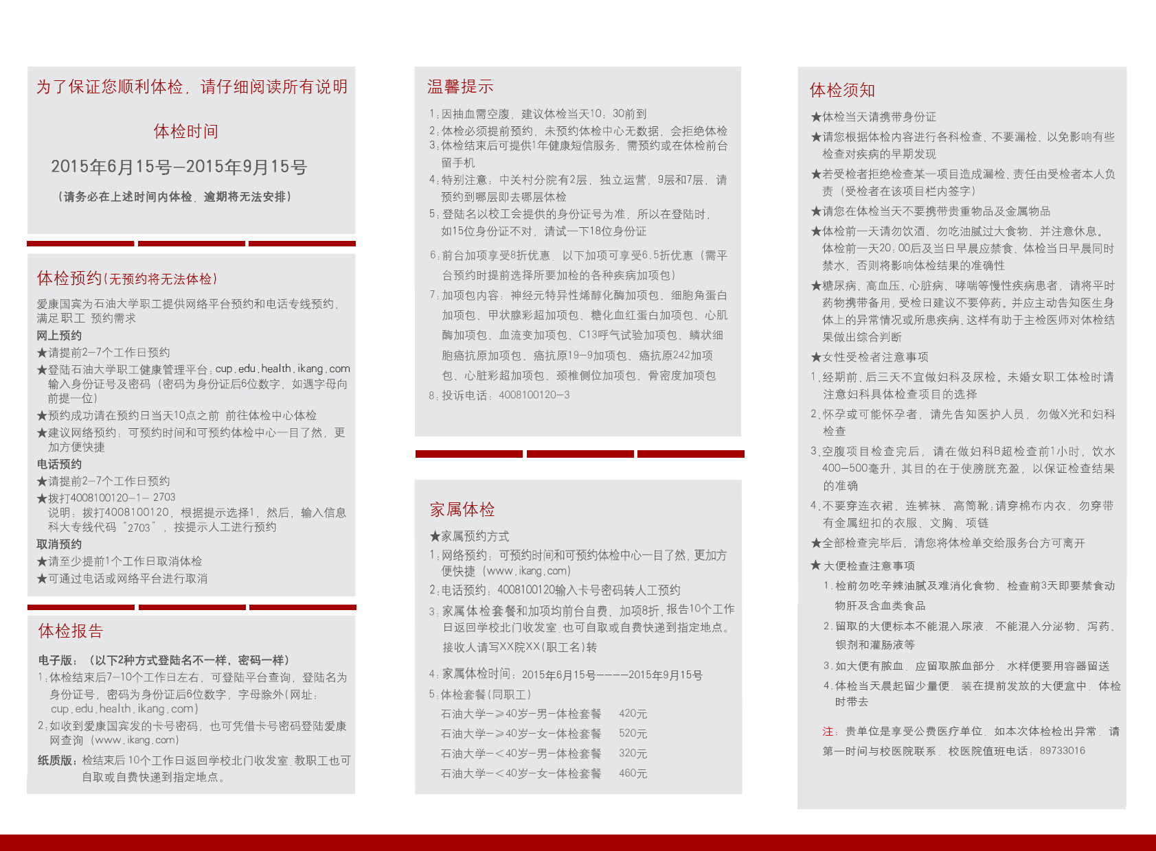 1.为了保证您顺利体检,请仔细阅读导检手册所有说明;