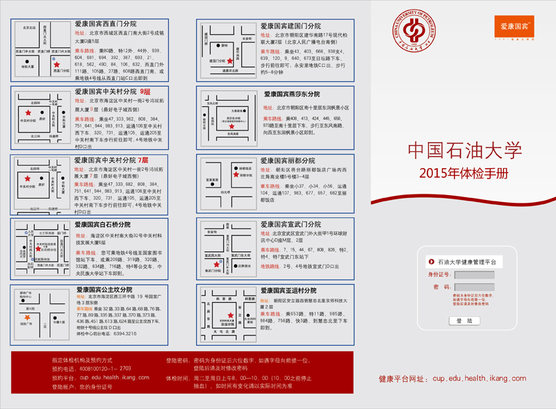 注:按照约定,纸质体检报告统一送至学校收发室,单独邮寄者请在体检时事先说明,邮寄费自付,家属体检报告如需送学校收发室请务必写清学校职工的二级单位名称和姓名。