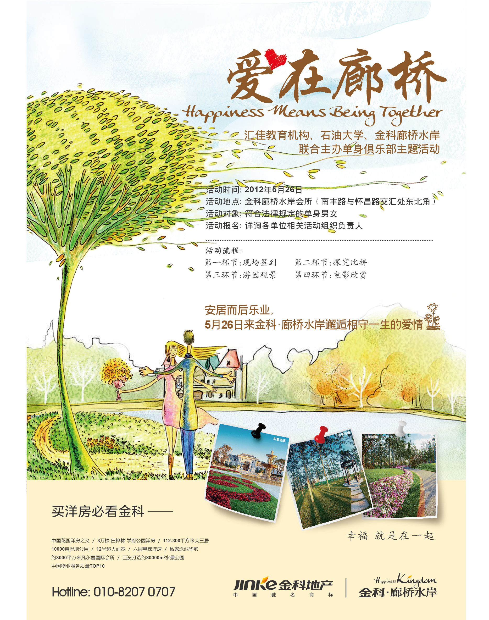 活动须知:本次活动以室内形式为主,金科地产将为参与人员提供饮料及精美茶点。请各单位参与人员提前将报名表发至单位负责人邮箱,我们将根据男女比例适当增加参与企业。(参与人员可志愿提前准备小礼物送给心仪伙伴。)
