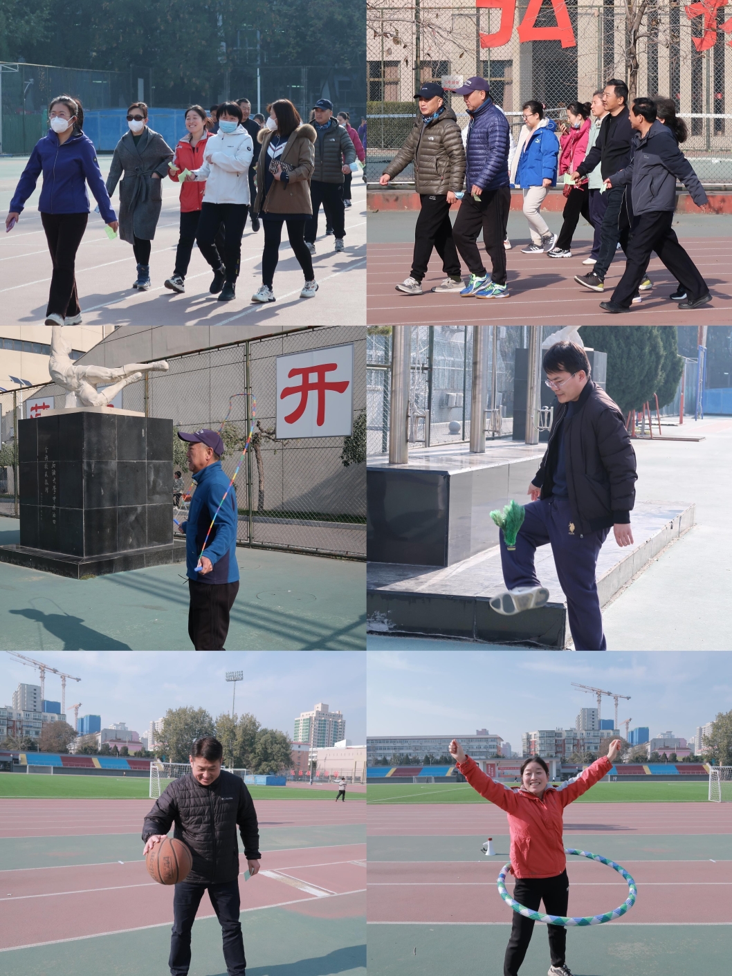 本次健康月活动共举办了两个活动,红旗操场健步走和趣味体育活动。首先进行教职工三公里步行活动,结束后教职工纷纷参与四个体育项目:跳绳、踢毽子、拍篮球、转呼啦圈。活动中老师们个个精神饱满、斗志昂扬,呐喊声、加油声、欢笑声不断,非常热闹。