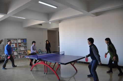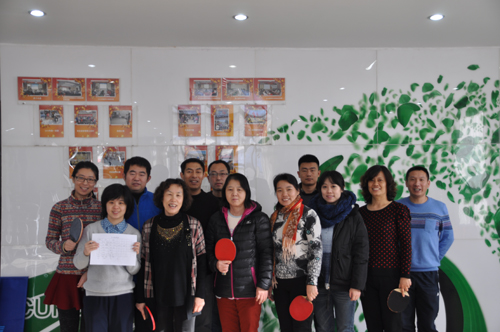 远程教育学院工会与机关工会于20141213日中午进行了乒乓球联赛。比赛进行男双、女双、混双、男单、女单,双方各派出13名队员参赛。