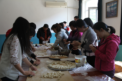 在健步走活动之前,学院还组织了包饺子活动,大家每个人亲自动手,各司其职,密切配合,拌馅、和面、擀皮、包饺子和煮饺子等环节井井有条,最终呈现出一顿美味的饺子午餐,大家兴致勃勃地享受着自己的劳动成果,整个过程充满了欢声笑语。包饺子活动增进了团队成员之间的凝聚力,活动形式也得到了大家的一致认可。