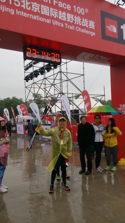 他在比赛中“不惧风雨,体验未知”战胜了风雨、低温、黑夜、路滑等困难,勇敢顽强、吃苦耐劳、挑战自我、战胜自我,最终以23小时14分安全顺利的跑完了全程。