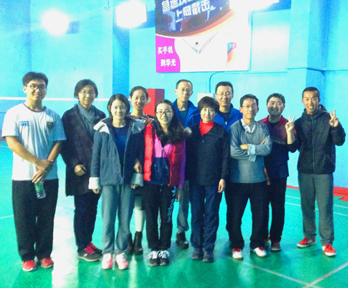 2015年11月3日下午17:00,中国石油大学(北京)外国语学院部分教职工和研究生在昌平区明羽羽毛球馆举办了师生羽毛球友谊赛。王忠智、单大明、丁晖、逯义峰、李滨等老师和15MTI宋华军、王楚、尚永梅、李晨、刘心、董寒冰、陈静、王甜甜等同学们进行了一次相互切磋,交流球技的友谊赛。