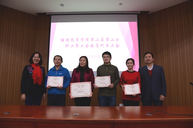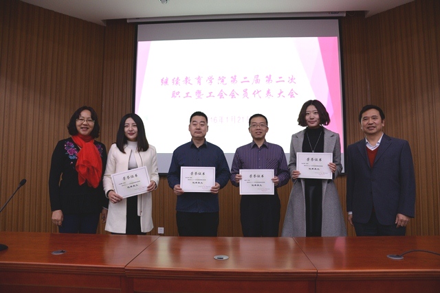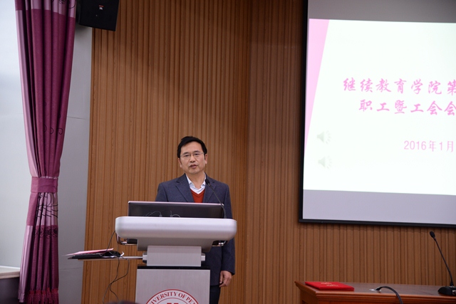 王仲民主席和薛谦院长共同为获得2015年度工会各项荣誉称号和学院“优秀员工”颁奖。王仲民主席发表讲话,祝贺继续教育学院获得学校“先进部门工会”称号,并高度评价学院过去的一年的工会工作。薛院长做2015年工作总结,从工作完成情况、工作业绩、党风廉政建设、下一步工作计划等方面向全体员工进行了全面的汇报。学院工会主席蔡冬梅和财务负责人娄春华分别做2015年学院工会工作总结和学院财务总结。