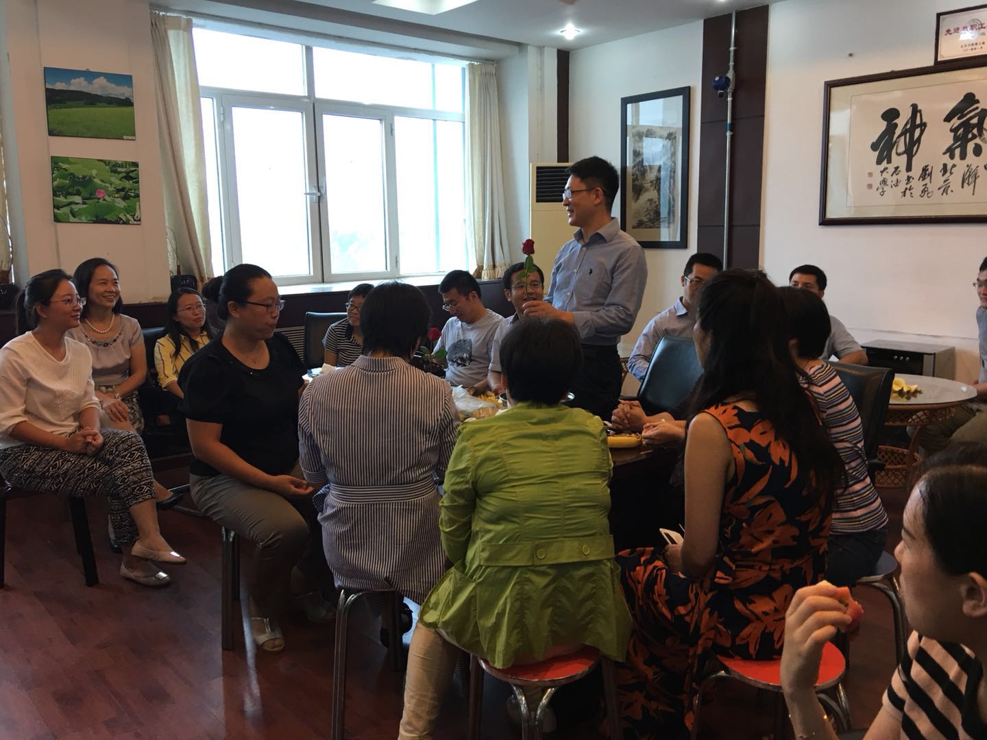 2018年9月13日化工学院工会在教职工之家召开茶话会,欢送过程装备与控制工程专业的老师调整到机械学院,欢迎环境科学专业的老师加入到我们化工学院。茶话会上首先新来的环科的老师做了自我介绍,然后过程专业的老师讲述了在化工学院的教学科研收获,表达了依依不舍的情怀,参会的其他老师纷纷表达不舍之情。最后孙学文书记代表化工学院的所有老师表达了对过程专业老师的祝福,祝福他们在新的学院做出更大的贡献,也欢迎环科的老师来到我们化工学院继续在教学科研各方面做出更大成绩,推进化工学院“双一流”发展。最后化工学院工会主席代表学院工会分别向过程和环科的每位老师赠送了鲜花和礼物,祝福每位老师工作顺利!生活幸福!身体健康!