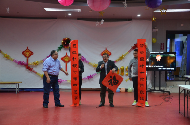 活动开始,由院领导做新年祝词。方凤玲院长对2018年本院做出的成绩进行了简明总结,同时指出还有待继续努力的地方,鼓励大家在2019年鼓足干劲,积极奋进。王培杰老师并给院集体书写了一个大大的“福”字以及对联一副“巍巍社稷七旬中国梦近,济济良才卅余马院振兴”,表达了对于马院未来的美好祝福。本院每位老师还得到王培杰老师书写了一个“福”字,并一本院里赠送的书籍《马克思传》。随后的环节里,学院的老师们纷纷演唱了自己喜爱的歌曲,或独唱,或合唱;或有伴奏、或是清唱;中文歌曲还有俄语歌曲。歌曲演唱中还穿插有谜语竞猜,由一位老师在台前根据某一成语表演动作,大家在台下猜。演唱和谜语竞猜活动活泼生动。