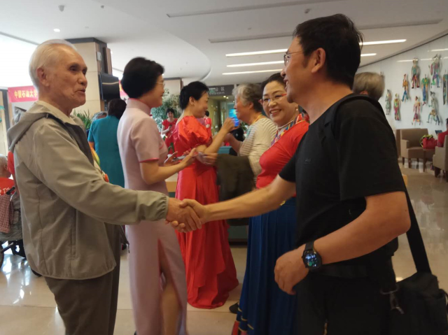 此次汇演是我校文艺社团走入泰康为1000多老人进行的联合公益演出,共带去陶笛合奏《祝福祖国》、《龙的传人》,陶笛独奏《梁祝》,小合唱《我为祖国献石油》、《我和我的祖国》,藏舞《献给妈妈的歌》,旗袍秀,京剧小合唱《贵妃醉酒》8个精彩节目。现场气氛非常热烈,照护区的居民基本上是行动不便的老人,由照护人员推着轮椅来到现场;还有活力区的居民前来助演和观看;我校在燕园居住的老领导老教师共7人到场,“见了你们格外亲”,老领导老教师见到母校来慰问的老师们非常高兴,一起聊家常一起合影留念。观众席上更是座无虚席。除了医护人员、社区居民外,还吸引了众多前来探视的家属观看节目。本来计划一个小时的节目,由于不断有返场的节目,直到17:00才结束。